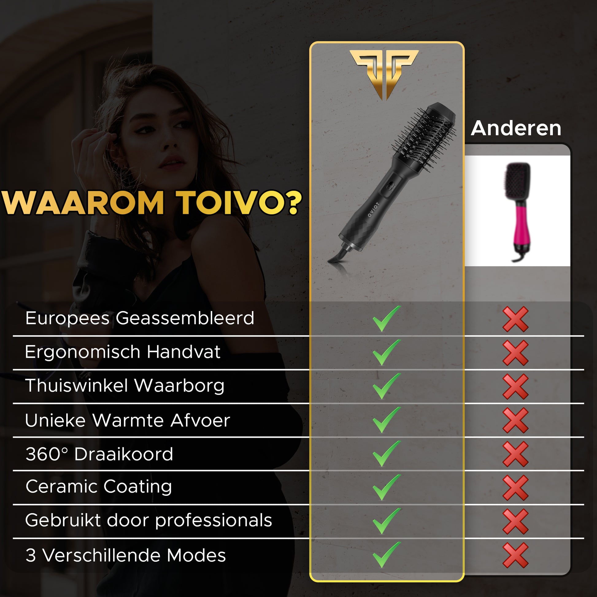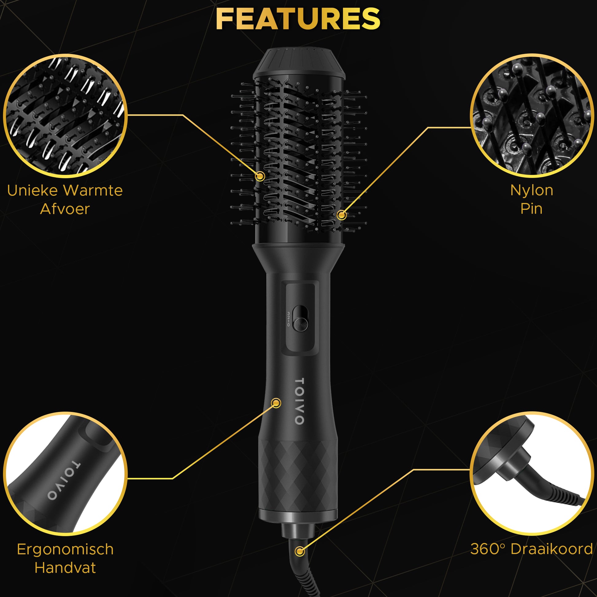 Toivo 3 in 1 Föhnborstel - Extra Lange Snoer 2 Meter