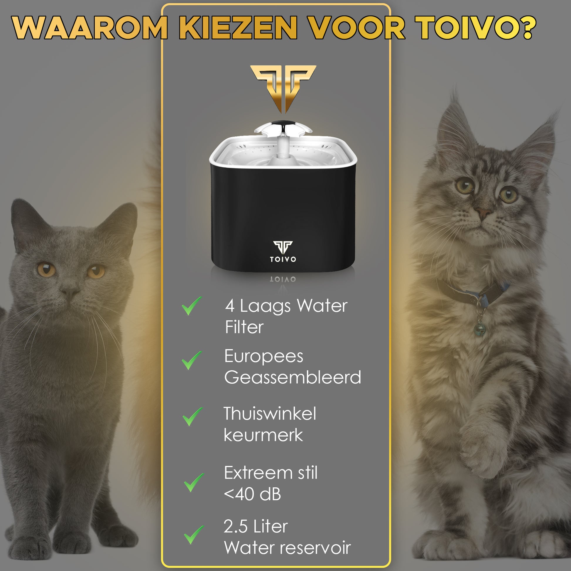 Toivo Drinkfontein - Hond/Kat – 2.5 Liter- Incl. 4 filters en cleaning tool