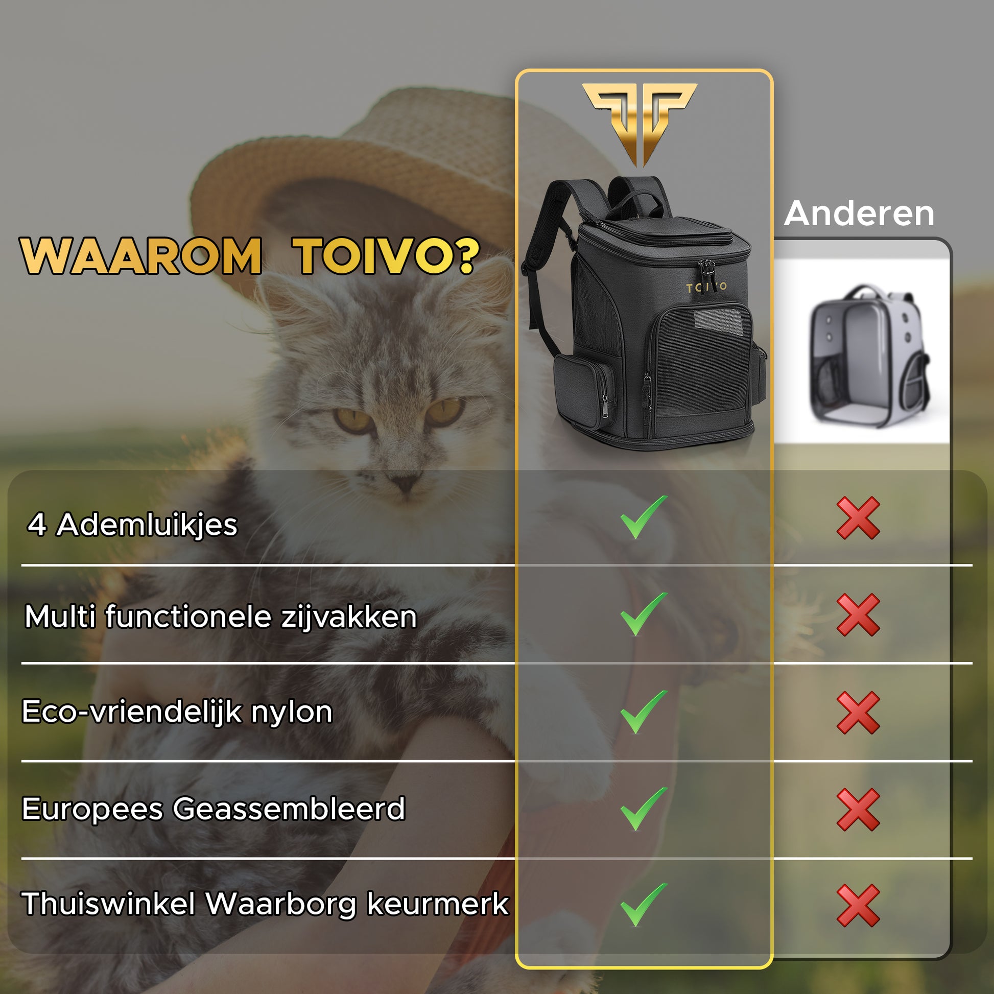 Wil jij jouw huisdier meenemen naar de dierenarts, een verre reis maken of er gewoon een lekker dagje op uit? Een steentje bijdragen aan het verduurzamen van onze wereld en genieten van Europees Geassembleerde kwaliteit? Dan is de TOIVO Deluxe Huisdieren tas perfect geschikt voor jou!