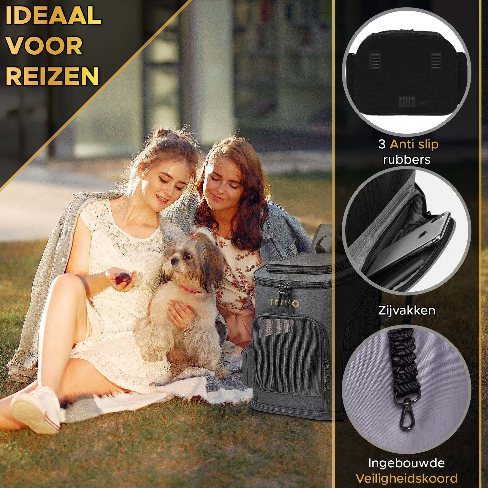 Toivo Honden Draagtas Hondenrugzak - Hoge Kwaliteit Milieuvriendelijk 400D Nylon Materiaal - Tot 8kg - 40x33x26CM