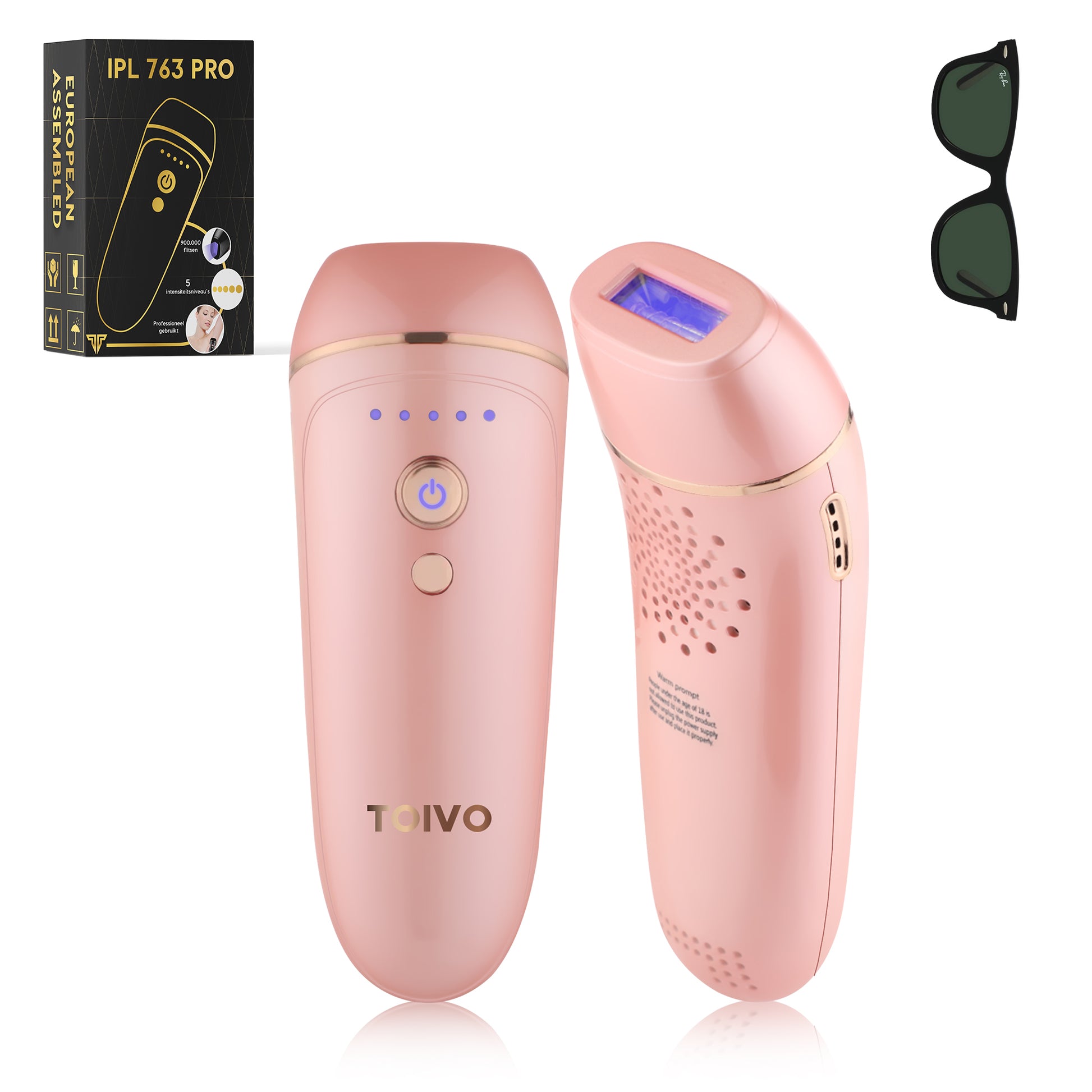Toivo IPL 763 PRO lichtontharing - Roze - 900.000 flitsen - incl. beschermingsbril