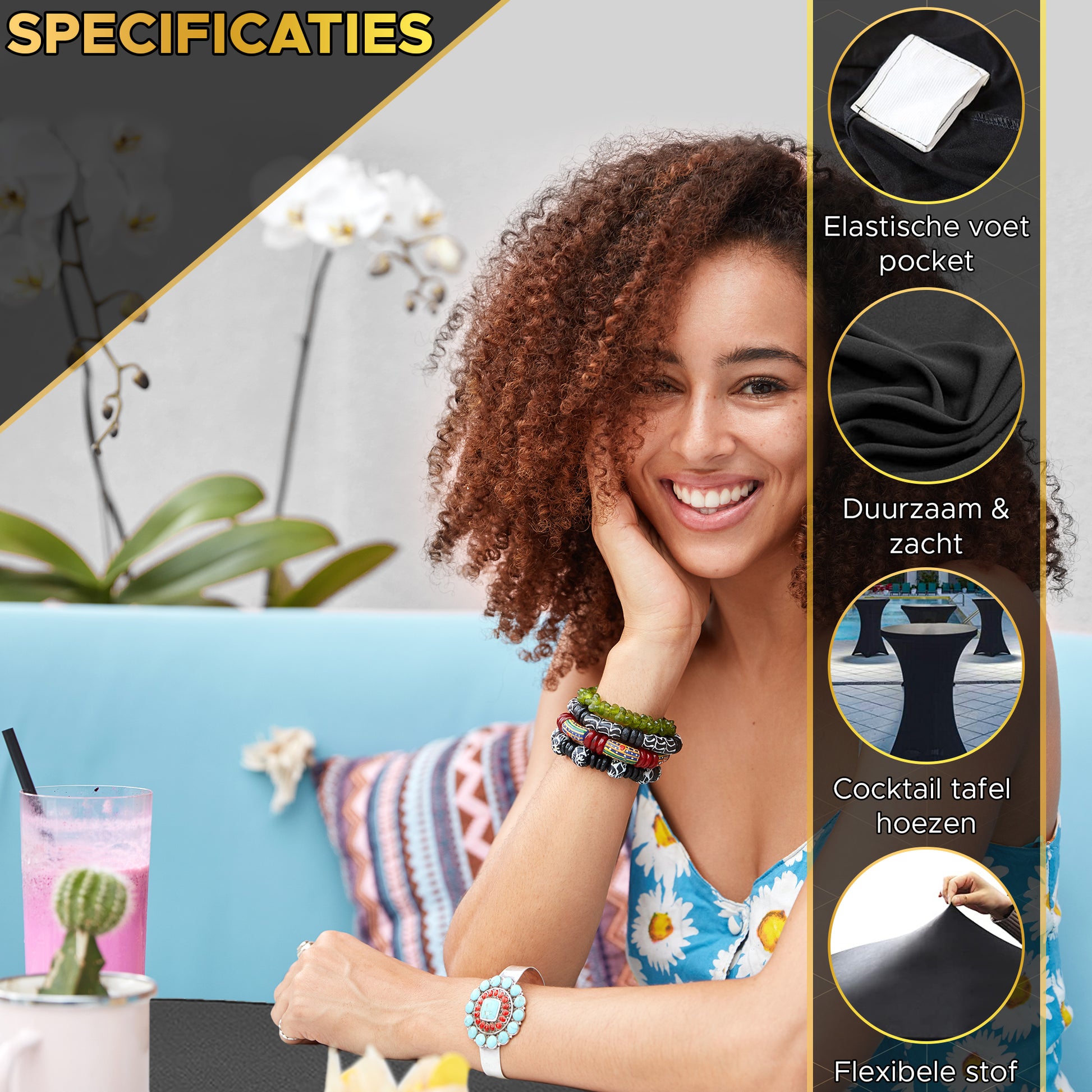 Toivo Statafel Rok Set Van 2 - 80 - 110 CM Stretch - Statafelhoes - Zwart - Extra Dik