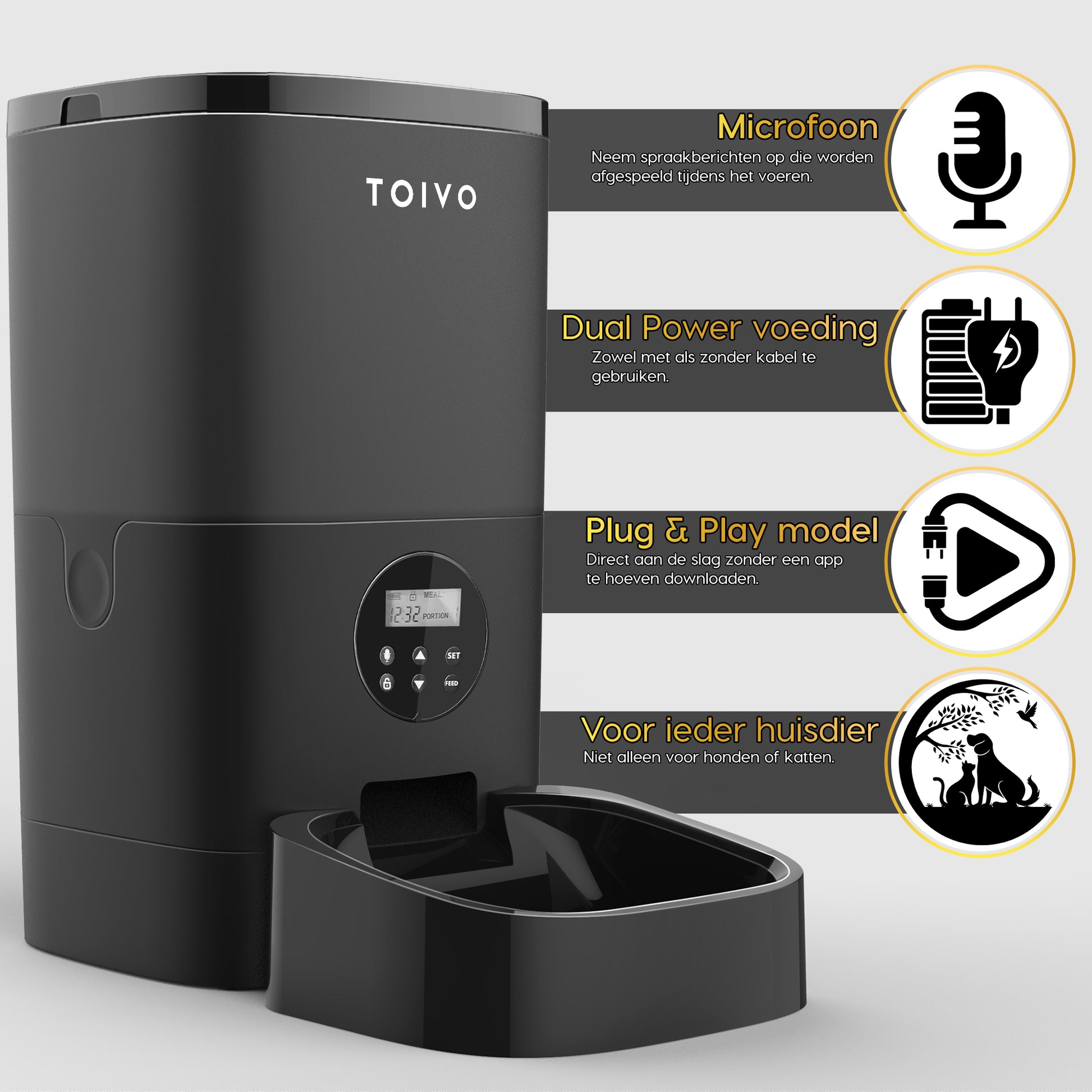 Toivo Voerautomaat 4L Pro - Automatische Voerbak - Voerdispenser - Katten en Honden Voerautomaat